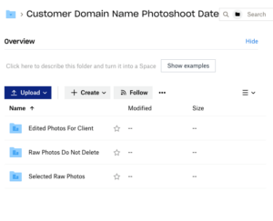 Please ensure you use the template folders for all photoshoots and video shoots when upload raw videos. Note that there are separate folders for this